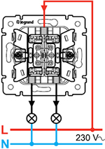 Выключатель двухклавишный Legrand 695605 Valena (10 А, механизм) скрытой установки, слоновая кость