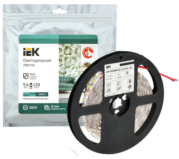 Лента свд 12В 9,6Вт/м 120свд/м 4000К 2835 IP20 IEK 5м