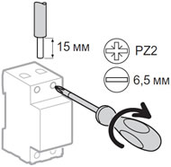 Присоединение проводников может осуществляться как сверху, так и снизу. Жесткий медный кабель: ?35 кв.мм. Момент затяжки: 3,5 Н*м. |