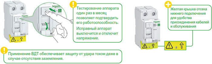 Выключатели дифференциального тока (ВДТ) с чувствительностью 100 мА исключают риск поражения человека электрическим током вследствие утечек при косвенном прикосновении.