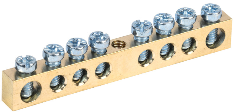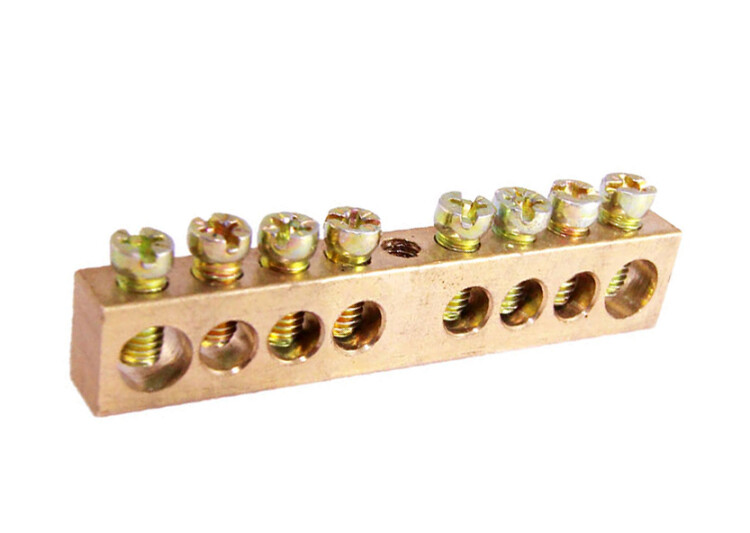Применяются в щитов ом оборудовании для подсоединения нулевых рабочих (N) и нулевых защитных проводов (РЕ). Крепление шины предусмотрено по центру (типы 8/1; 14/1) и по краям (типы 8/2 и 14/2) через изолятор нулевой шины на 35 мм монтажную DIN-рейку и через угловые изоляторы нулевой шины, а также непосредственно на панель щита. При подключении к шинам медных многожильных проводов рекомендуется оконцевание их наконечниками-гильзами. Выполнены из латуни.