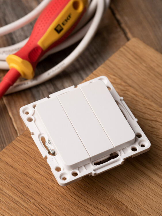 Выключатель трехклавишный EKF EYV10-024-10 "Стокгольм" (10 А, IP20) скрытой установки, белый
