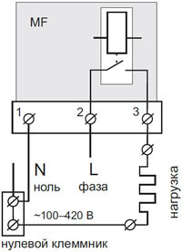 - Соединительные провода нагрузки подключаются к клемме 3 и к нулевому клеммнику (в комплекте нет).
