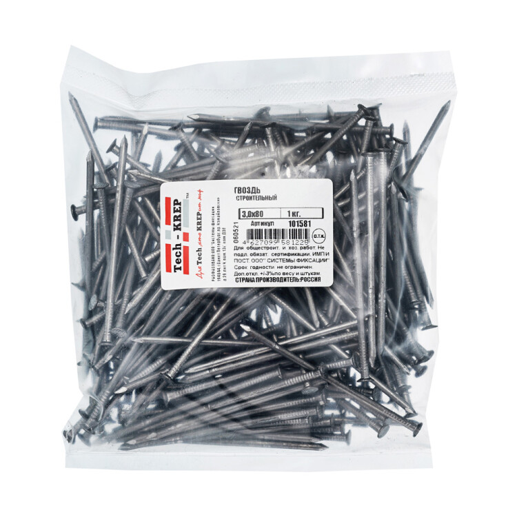 Гвоздь 3*80мм строительный 1,0кг