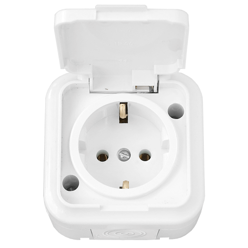 Розетка одноместная РА16-214 (IP44) открытой установки, с заземлением, с крышкой