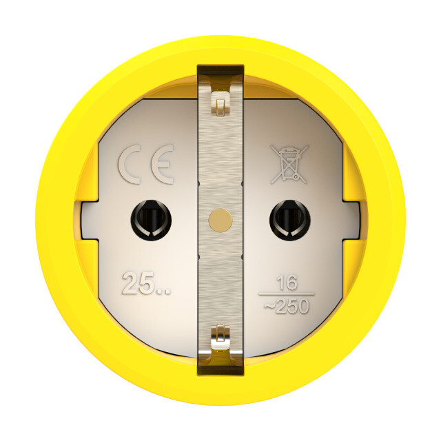 Розетка кабельная PCE 2511-es Taurus2 (16 А, 250 В, резина, IP54) с заземлением, с крышкой, желтый / черный