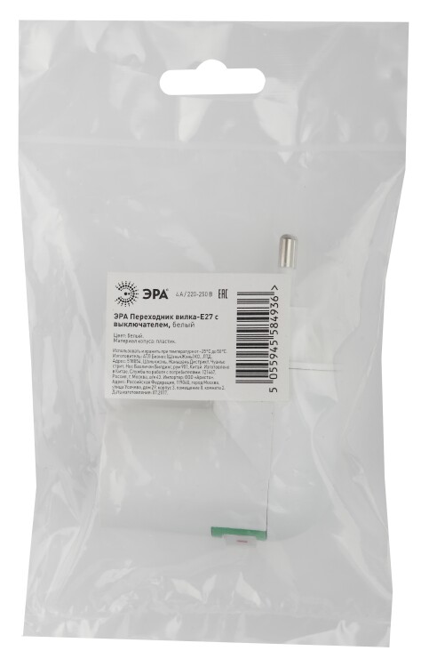 Патрон-переходник вилка-E27 пластик белый
