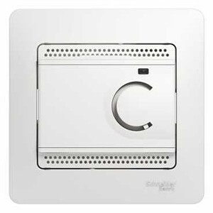Термостат Schneider Electric серии Glossa предназначен для контроля температуры теплого пола путем регулировки температуры нагревательных кабелей, вмонтированных в пол.