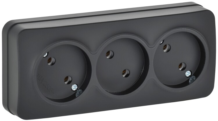 Розетка трехместная IEK РС23-2-ХЧм Glory (10 А, IP20) открытой установки, черный матовый