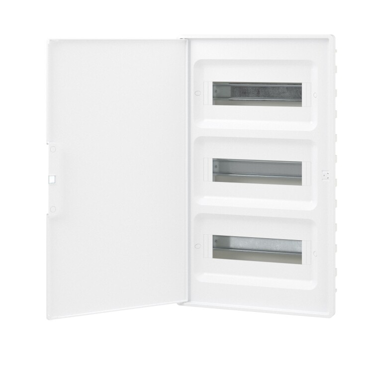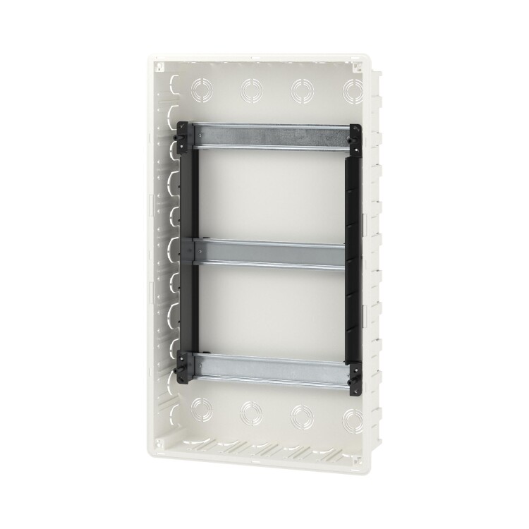 Встраиваемый щиток «Фрейм» (FRAME) предназначен для скрытого монтажа в бетонные\кирпичные стены. Применяется для установки модульных устройств. Съёмная рама с DIN-рейками позволяет сначала смонтировать и подключить оборудование и затем установить его в основание щитка в стену. Установка стандартных латунных шин возможна по всем стенкам корпуса и на боковую сторону съёмной рамы щитка. Единый корпус шинодержателя можно разделить на сегменты и использовать отдельно. Симметричный корпус щитка. Количество модулей- 36. Цвет корпуса белый, цвет двери- белая, ширина- 311,6 мм, высота- 529,1 мм, глубина- 100 мм. Материал- термостойкий и ударопрочный пластик. В комплекте DIN-рейка из гальванической оцинкованной стали, 4 шины PEN по 2шт на 8 и 10 отверстий