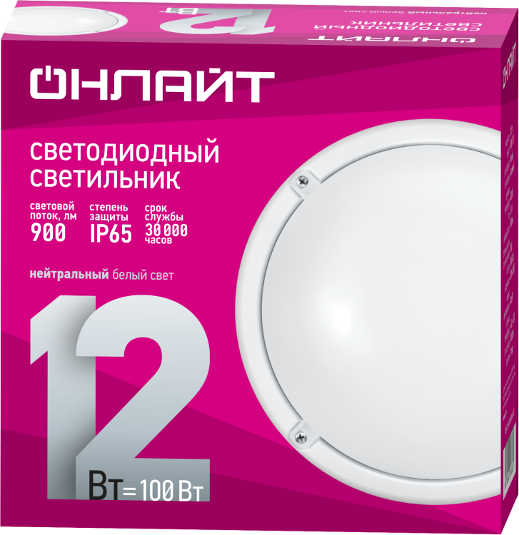 Светильник ДПП 12Вт 4000К 900лм круг белый IP65 Онлайт