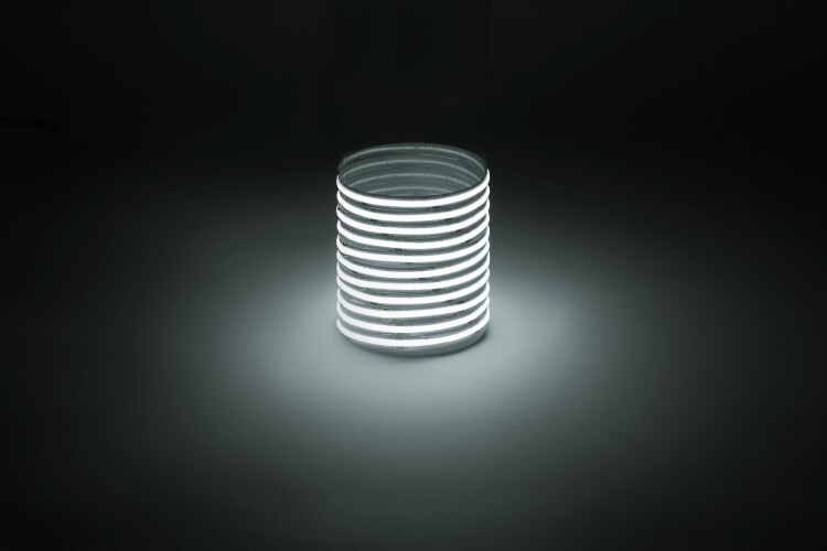 Лента светодиодная ЭРА LRCOB-352-8 12W/m 8mm 24V 6500K 3year белая 5 м со степенью защиты от пыли и влаги IP20 - современный способ создания внутреннего освещения, подсветки ниш, лестничного пространства, систем хранения, а также декоративного и художественного оформления любых объектов и форм в помещениях. Светодиодная СОВ лента сплошной засветки без видимых светодиодов. Легко и быстро устанавливается на любой гладкой поверхности с помощью скотча, расположенного на оборотной стороне ленты Используя алюминиевый профиль, можно создавать необычные и функциональные решения освещения в Вашем интерьере. Рабочее напряжение ленты составляет 24В, а мощность равна 12 Вт/м. Светодиодная лента обладает световым потоком 1020 Лм/м, и цветом свечения - холодный белый (6500 K)