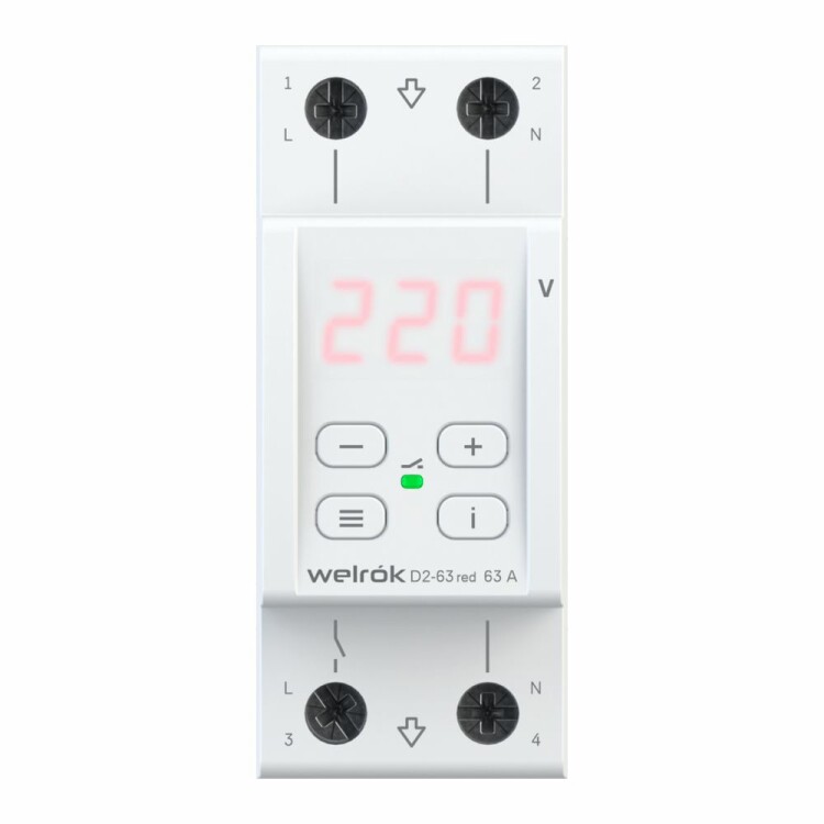 Реле напряжения 1ф 63А 2мод D2-63 Welrok RED