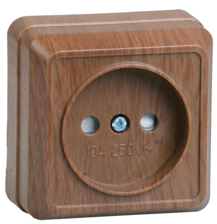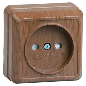 Розетка одноместная IEK ERO13-K04-10-DC "Октава" (10 А) открытой установки, с защитными шторками, дуб