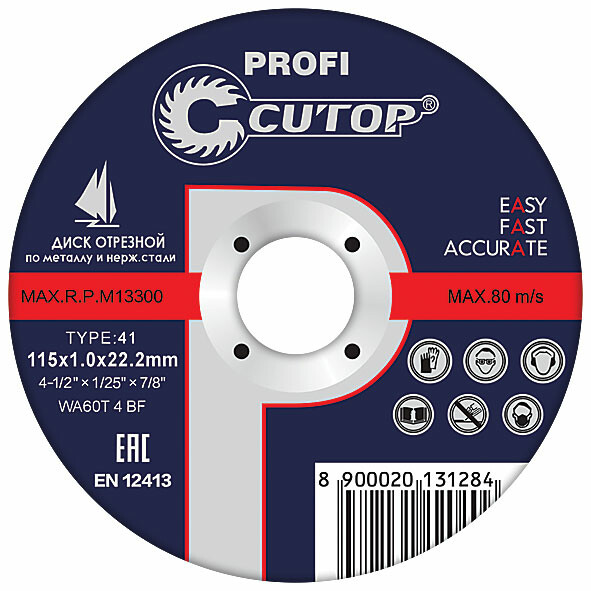 Круг отрезной по металлу и нерж стали 125*1,0*22 Cutop