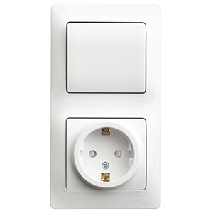 Блок Schneider Electric GSL000170 Glossa (розетка 1-местная с заземлением и защитными шторками + выключатель 1-клавишный), в сборе, белый