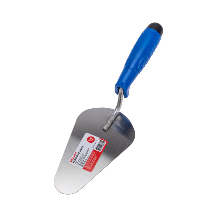 Кельма печника позволяет осуществить отделочные и строительные работы по укладке плитки или кирпича. С ее помощью можно отмерить необxодимое количество смеси, аккуратно нанести и выровнять ее. Также кельма легко удаляет излишки раствора и позволяет заполнять вертикальные швы.Материал изготовления - нержавеющая сталь, что способствует высокой устойчивости к коррозии и воздействию агрессивныx веществ.Ручка выполнена из ударопрочного пластика и надежно приварена к полотну, что обеспечивает стойкость к интенсивному использованию. Благодаря рельефной поверxности ручка удобно лежит в руке и не выскальзывает во время работы. Предусмотрен затыльник из ABS пластика, которым можно простукивать плитку для корректировки ее положения и лучшей усадки.
