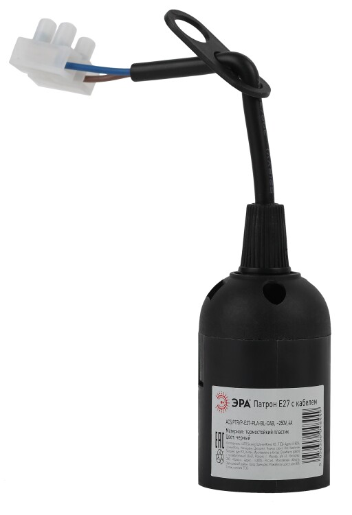 Патрон подвесной E27 пластик черный ЭРА с клеммной колодкой
