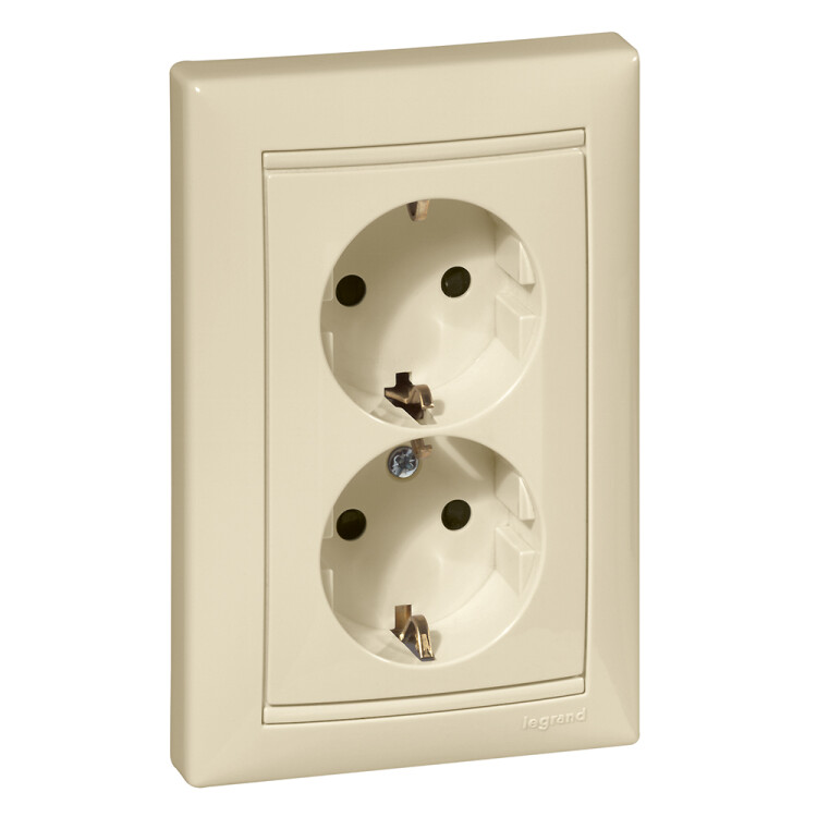 Двойная силовая розетка для подключения бытовых приборов и офисной техники в одном монтажном месте. Оснащена заземляющими контактами и защитными шторками, поэтому подходит для жилых, административных и гостиничных помещений, где важны безопасность и аккуратный внешний вид.