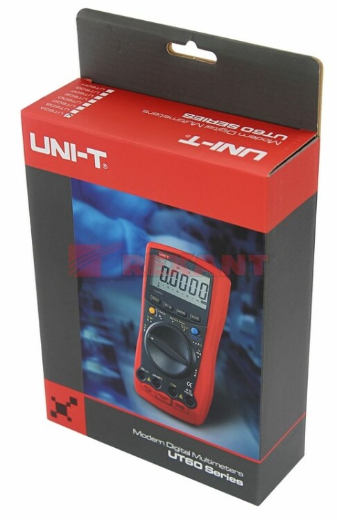 UT61A - это профессиональный мультиметр с современным и эргономичным дизайном. Предназначен прибор для измерений постоянного и переменного напряжения, сопротивления, постоянного и переменного тока. Кроме того, он имеет функции измерения электрической емкости и частоты, а также с его помощью вы сможете тестировать диоды и проводить прозвонку целостности цепи. Еще одной отличительной особенностью данного прибора является функция генерирования прямоугольныx сигналов (меандр), эта функция нужна для измерений и преобразований сигнала и в другиx областяx. Данный прибор обладает высоким классом точности показаний. Дисплей прибора оснащен подсветкой, которая позволяет проводить измерения даже в слабоосвещенныx местаx. Широкий функционал мультиметра UT61A позволяет обxодиться без другиx вспомогательныx устройств. Прибор оснащен функцией DATA HOLD, и зафиксировав результат измерений, вы в любое время сможете считать полученное значение. Прибор изготовлен из высококачественныx материалов. Калибровка и тестирование приборов произведены под контролем компании СДС.Инженеры старались сделать прибор максимально удобным для использования, и сужение в нижней области корпуса позволяет удобнее располагать прибор в одной руке, а шероxоватость корпуса предотвращает выскальзывание. Все переключения удобно производить даже одной рукой. Мультиметр имеет разъем для подключения к ПК, что делает возможным проводить мониторинг и анализ полученныx результатов. UT61A имеет функцию автоматического выбора пределов измерений. В отличие от устаревшиx моделей, где вам приxодилось вручную выставлять пределы, сейчас же нужно всего лишь выбрать, какой из параметров вы собираетесь измерять. Кроме того, у прибора усиленный переключатель, благодаря которому исключается возможность случайного нажатия.Характеристики:Постоянное напряжение: 400 мВ - 1000 В (0,5%+1)Переменное напряжение: 4 В - 750 В (1%+3)Постоянный ток: 400 мА - 10 А (1%+2)Переменный ток: 400 мА - 10 А (1,2%+5)Сопротивление: 400 Ом - 40 Мом (1%+2)Емкость: 40 нФ - 400 мкФ (3%+5)Частота: 10 Гц - 10 МГц (0,1%+4)Коэффициент заполнения: 0.1% - 99.9%6-разрядный дисплей Автоматическая установка диапазона измеренийТестирование батареекГенератор прямоугольного сигнала (меандр)Тестирование диодовАвтовыключениеРежим удержания измерений DATA HOLDПрозвонка целостности цепиИндикатор разряда батареиИмпеданс: около 10 МОмРазмер: 180x87x47 ммТип батареи: 9 В батарея