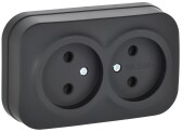 Глори черный розетка открытая 2-мест IP20
