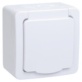 Гермес белый розетка открытая 1-мест заземление с крышкой IP54