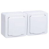 Гермес белый розетка открытая 2-мест заземление с крышкой IP54