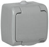 Мурманск серый розетка открытая 1-мест заземление с крышкой шторки IP54