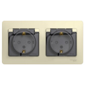 Глосса бежевый розетка скрытая 2-мест заземление с крышкой шторки IP44
