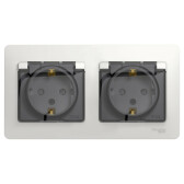 Форс серый розетка открытая 2-мест заземление с крышкой шторки IP54