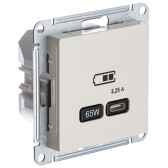 Атлас бежевый розетка USB скрытая 1-ая тип-C 65Вт