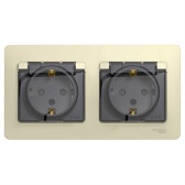 Брайт бежевый розетка скрытая 2-мест заземление с крышкой шторки IP44