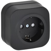Глори черный розетка открытая 1-мест заземление шторки IP20