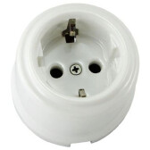 Болонь белый розетка открытая 1-мест заземление IP20 фарфор