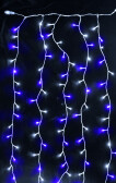 Гирлянда занавес 2,5*1,5м белый/синий 500свд соединяемая IP44 прозрачный провод (до 6мод)