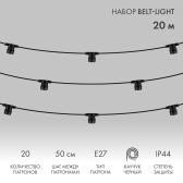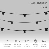 Гирлянда Белт-лайт 10м, E27, шаг 50см, 20 патронов, черный каучук, IP44