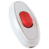 Выключатель на шнур с клавишей 6А белый с красной кнопкой