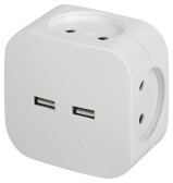 Разветвитель 2-мест 16А заземление 2*USB белый треугольник пластик Rexant
