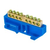 Шина нулевая 6*9 10групп 2 угловых изолятора синий винтовой по краям EKF Цинк