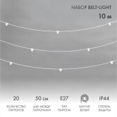 Гирлянда Белт-лайт 10м, E27, шаг 50см, 20 патронов, белый каучук, IP44